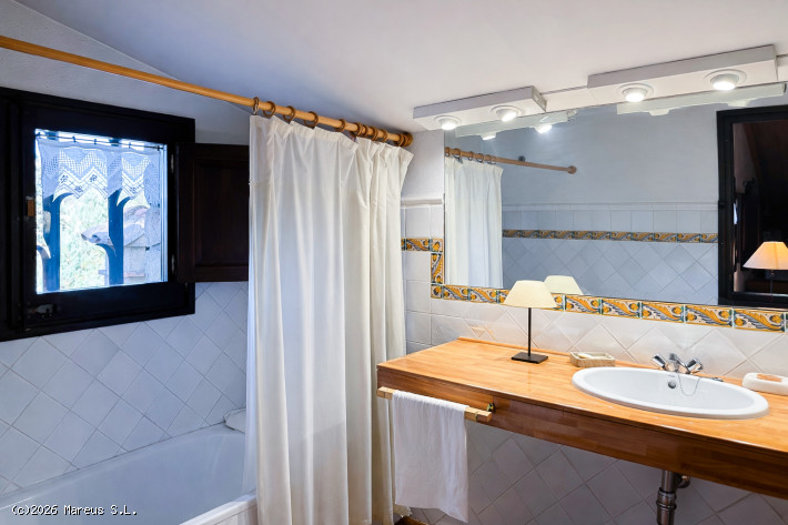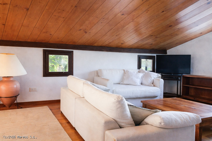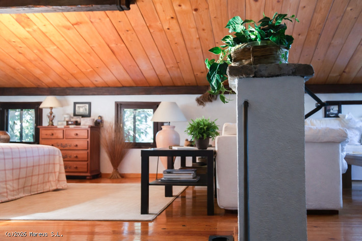 A la planta superior es troba una gran suite que ocupa tota la planta, un espai ampli i versàtil dividit en dos ambients: una zona de descans i una zona d’estar o saló privat, ideal com a racó de lectura, zona de relax o fins i tot despatx, a més d’un bany complet.